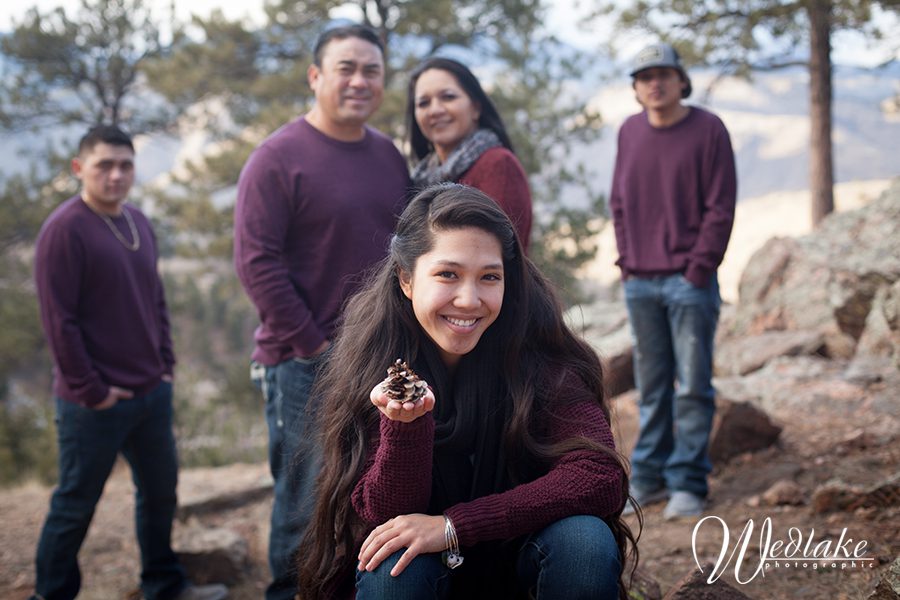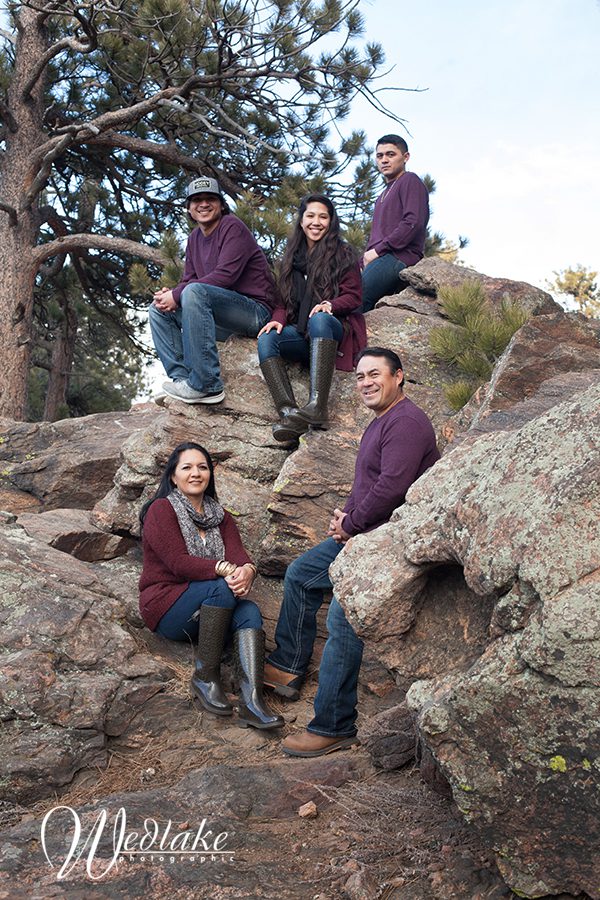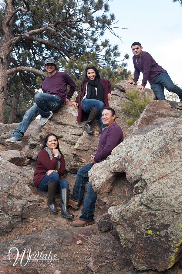 I haven’t posted in awhile … the holiday season always keeps me so busy with both photography and personal things, but I’m back at it with a new blog post about this recent family session on Lookout Mountain in Golden! These five are such a sweet, fun family and Lookout Mountain is the perfect location for mountain views and Colorado scenery. This family is from Hawaii and was traveling through town for a short time around the holidays. They wanted snow in their photos and as you can see we caught a tiny little bit hanging out in the shadows on Lookout Mountain but mother nature didn’t cooperate with fresh powder for us. No matter, we got some great images and we were treated to a bit of wildlife viewing along the road on the drive out! My teenage son actually snapped that photo, he is starting to come along on the occasional job with Paul and me and is turning out to be a good photo assistant!